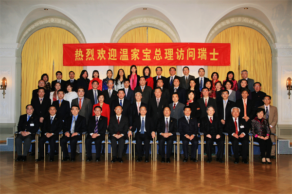 2009年1月27日,中国国务院总理温家宝在瑞士首都伯尔尼接见在瑞士的华人,华侨代表. (第3排左2为瑞士中心创建人兼董事长方武玲女士)